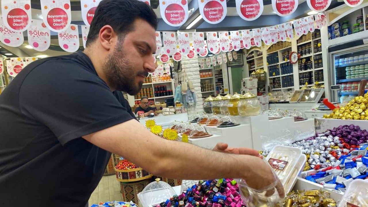 Elazığ’da yaklaşan Kurban Bayramı ile birlikte vatandaşlar sofralarını tatlandırmak için bayram şekerlemeleri satan esnafa yöneldi. Şekerleme tezgahlarını hazırlayan Elazığ Kapalı Çarşı esnafı da vatandaşların en çok sütlü, çikolatalı ve aromalı şekerleme türlerini tercih ettiğini belirtti. Kurban Bayramı için tezgahının hazır olduğunu ifade eden esnaf Murat Yılmaz, "9 senedir kapalı çarşıda esnaflık yapıyorum. Kurban Bayramı yaklaştı, biz de tezgahlarımızı bayrama 1 hafta kala hazır hale getirdik. Şu an için fazla bir rağbet yok. Büyük ihtimalle, hafta içi yoğunluk olur. Tezgahımızda yaklaşık olarak 50 çeşit şeker türü bulunuyor. Şeker fiyatlarımız geçen sene ile aynı fiyattadır, fiyatlarımız değişmedi. Vatandaşlarımız cebini düşünüyor, cebine göre hareket ediyor. Fiyat aralığına göre, kalitesini kendisi belirleyip şekerini alıyor. En fazla rehavet gören şekerleme türlerimiz, klasik sütlü ve aromalı olarak tercih ediliyor. Şekerlerimiz 150 liradan başlayarak, 650 liraya kadar çıkabiliyor" dedi.
