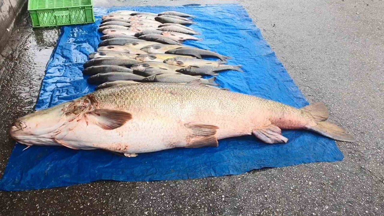 Elazığ'da amatör balıkçılar, Murat Nehri'nde 52 kiloluk dev turna balığı yakaladı.