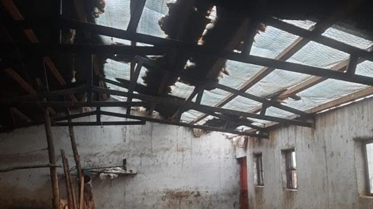 Elazığ’da etkili olan fırtına bir ahırın çatısını uçurdu.