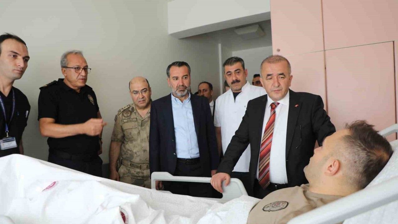 Elazığ’da il protokolü, silahlı çatışmada yaralanan Polis Özel Harekat memuru Furkan Pazarbaşı’nı hastanede ziyaret etti.