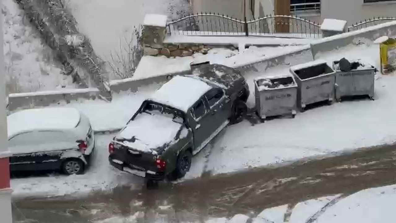 Elazığ'da sabah saatlerinde başlayan kar yağışı trafikte sürücülere zor anlar yaşatmaya devam ediyor. Kentin farklı noktalarında bulunan rampa yollarda kayan araçlar ise vatandaşların cep telefonu kamerasına yansıdı. Görüntülerde, yokuş aşağı giden bir araç son anda dururken bir başka araç çöp konteynerlerine çarparak durabildi. Başka görüntülerde ise, minibüs ve aracın buz tutan yollarda kayma anları görüntülendi.