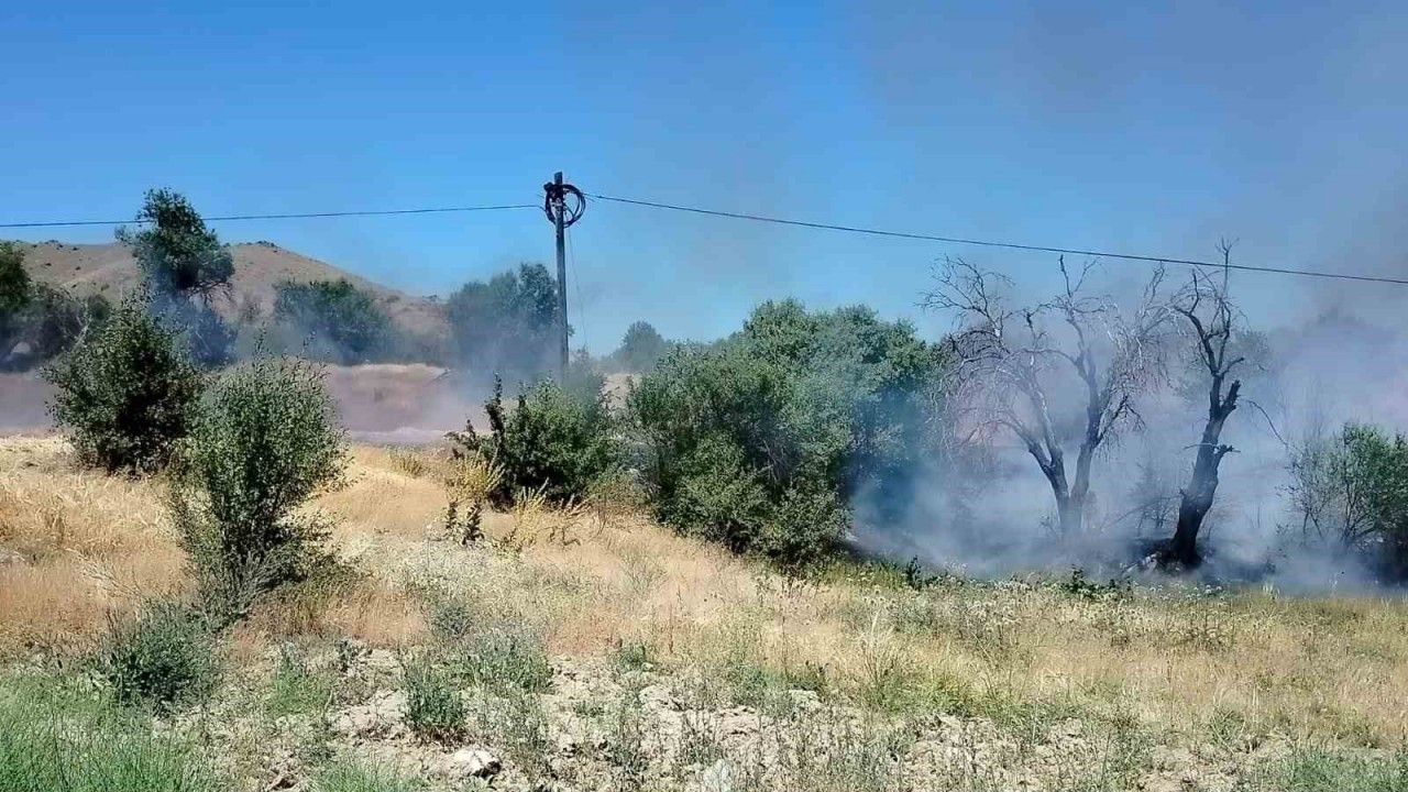 Elazığ’ın Keban ilçesinde otluk ve ağaçlık alanda çıkan yangına ekipler müdahale ediyor.