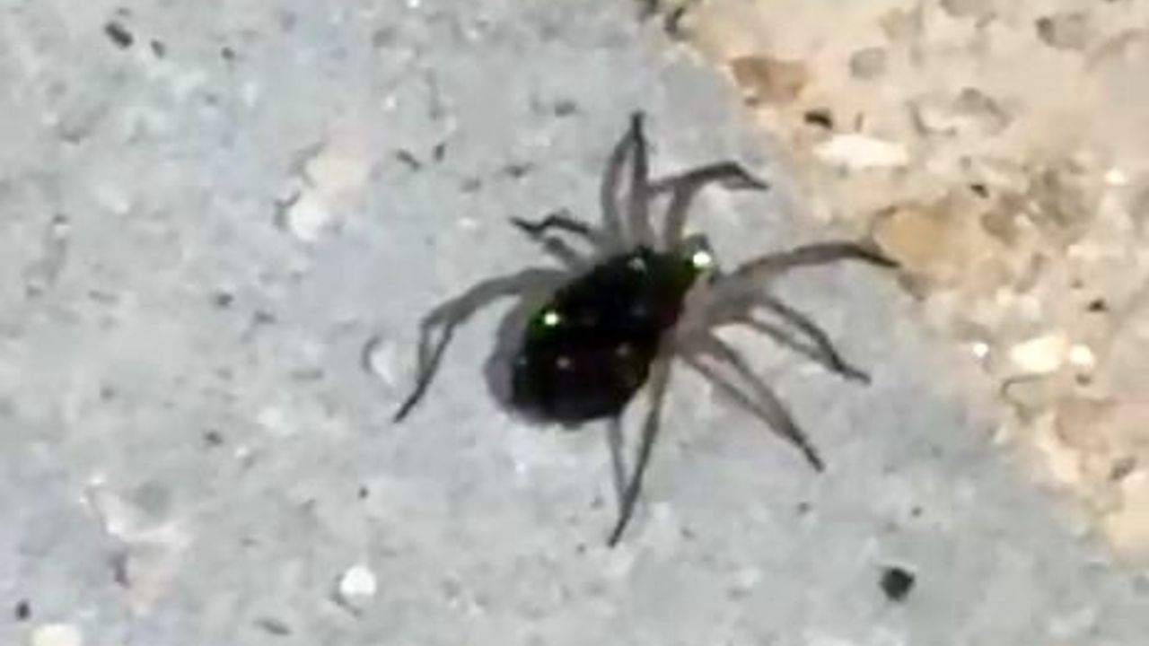Elazığ’da kurt örümceği, sırtındaki yavrularıyla birlikte görüntülendi.