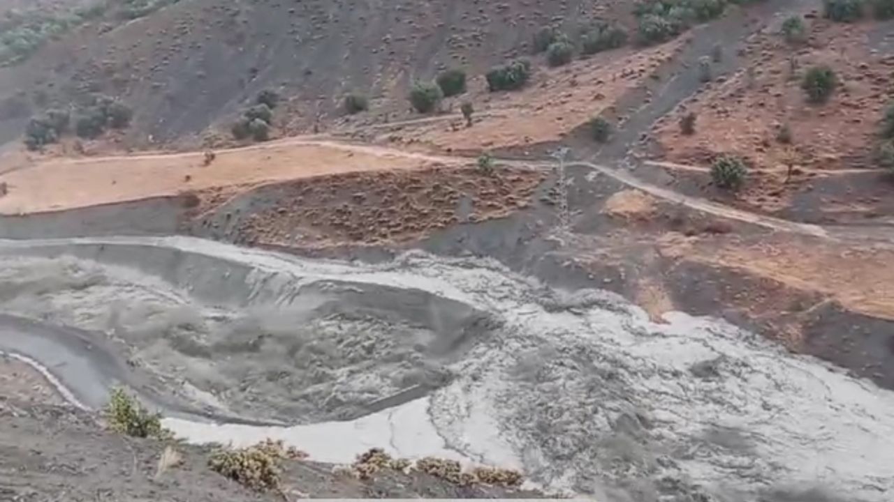 Elazığ'ın Palu ilçesine bağlı Gökdere köyünde sağanak yağıştan dolayı oluşan selde, 10 köyün kullandığı yol sular altında kaldı.