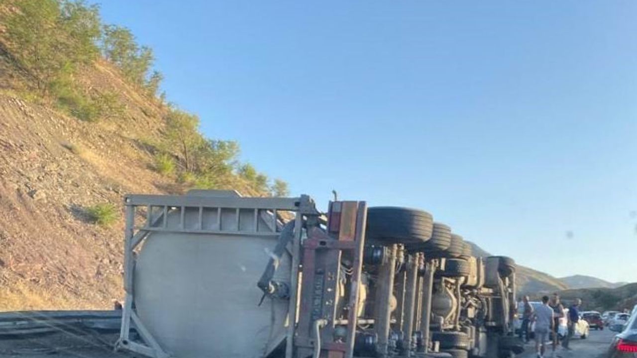 Elazığ’ın Maden ilçesinde sürücüsünün direksiyon hakimiyetini kaybettiği tır yoldan çıkarak yan yattı. Kazada 1 kişi yaralandı.