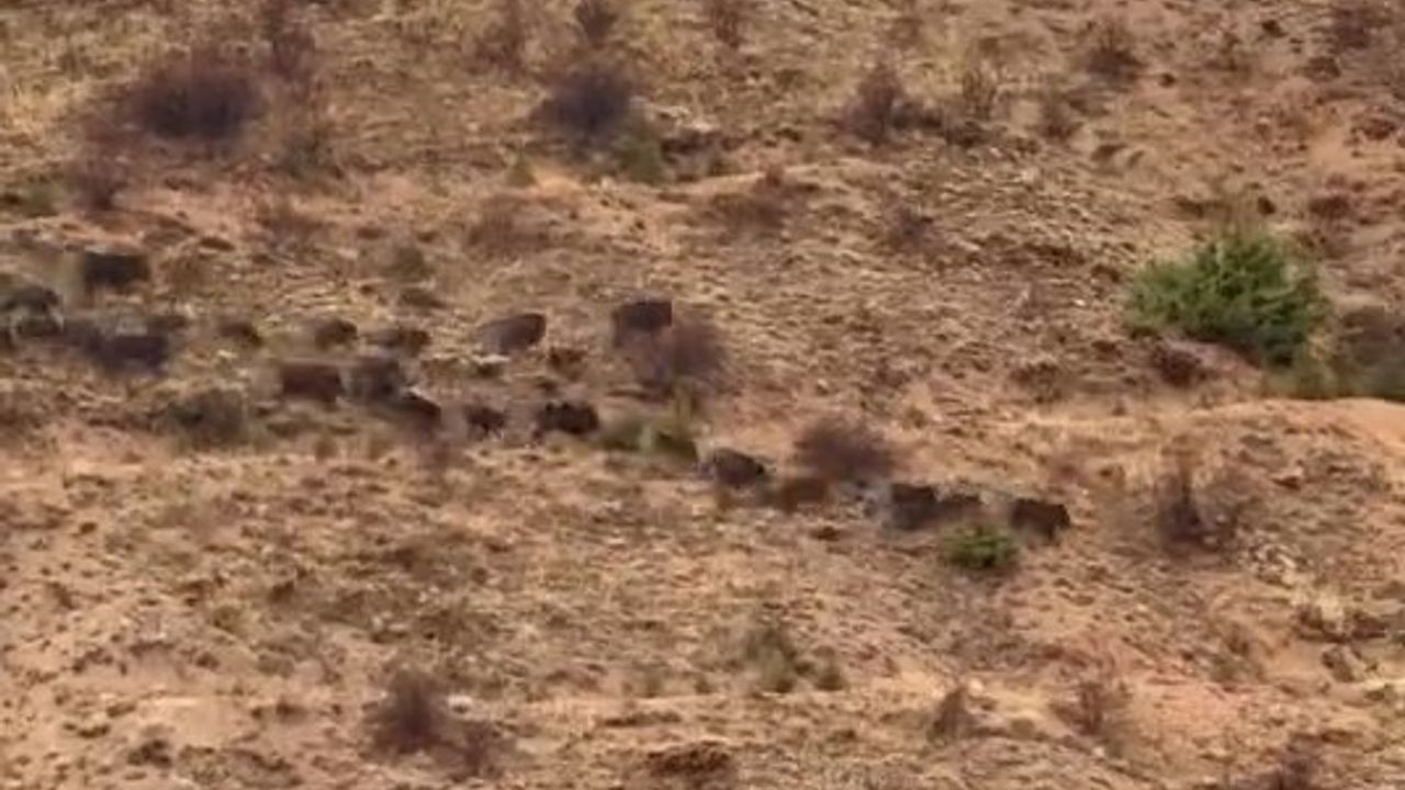 Baskil’in Hacımustafa köyü kırsalında domuz sürüsü görüntülendi. Dağda yiyecek arayan sürü köy sakinlerince cep telefonu ile kayıt altına alındı. Bir süre görüntülenen domuz sürüsü daha sonra gözden kayboldu.