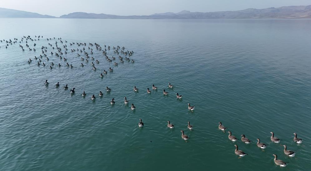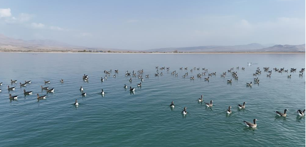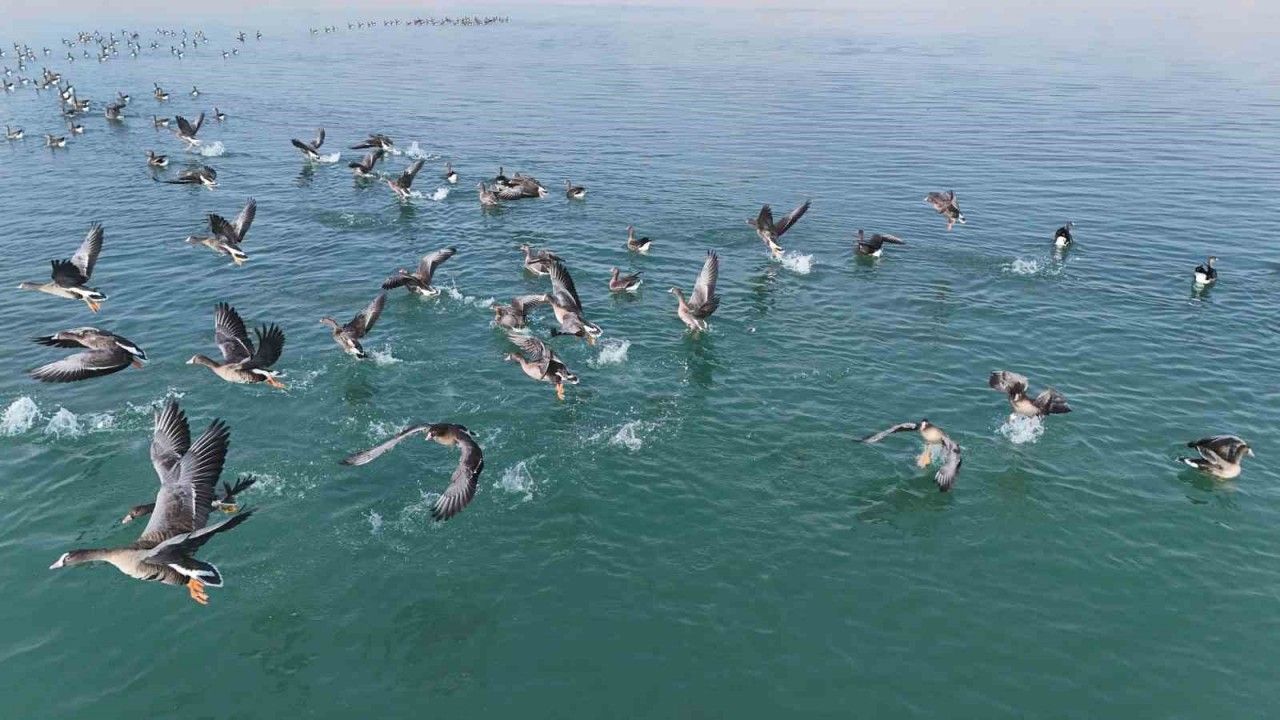 Türkiye’nin önemli sulak alanlarından ve kuş cennetlerinden biri olan Erçek Gölü’nün yeni misafirleri küçük sakarcalar havadan görüntülendi.