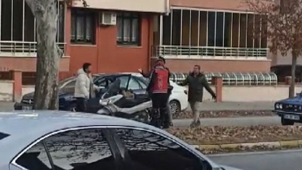 Erzincan'da kendisini trafikte tehlikeye düşürdüğünü ileri süren motosiklet sürücüsü otomobil sürücüsünü yumrukladı. Yaşanan kavga cep telefonu kamerasına yansıdı.