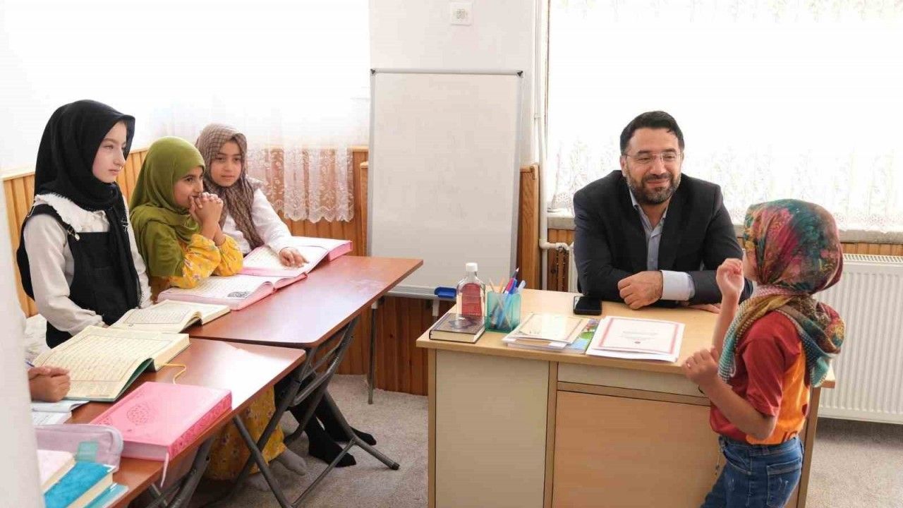 Erzincan İl Müftüsü İsmail Fakirullahoğlu, Halitpaşa Kardeşler Camii’nde devam eden yaz Kur’an kursunda öğrenim gören öğrencileri ziyaret ederek, çocuklarla bir araya geldi.