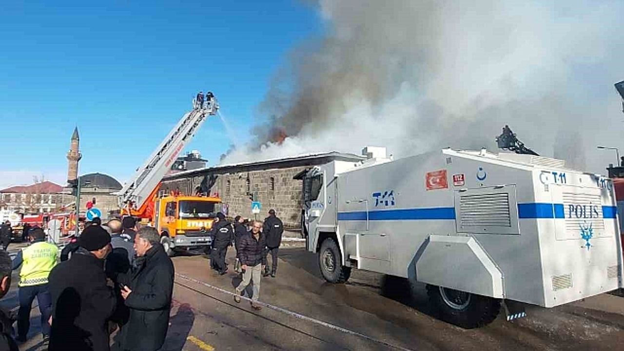 Erzurum'da içinde restorasyon çalışmaları yapılan, yaklaşık 160 yıllık Taş Ambarlar'ın çatısında çıkan yangın kontrol altına alındı.