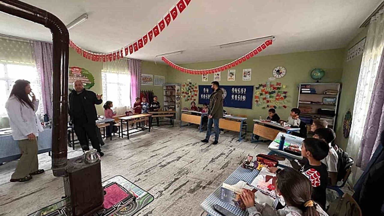 Erzurum'da polis, köy okullarını ziyaret ederek çocuklarla güzel anlar geçirdi, onlara hediyeler verdi.