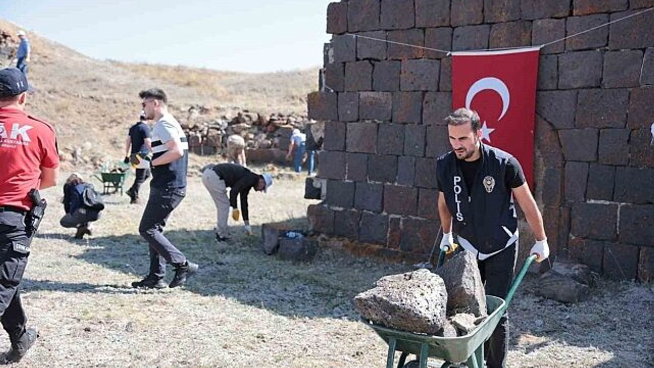 'Erzurum Tarihin izinde. Ecdadımıza Vefa Projesi' çerçevesinde Erzurum Emniyet Müdürlüğü Büyük Höyük Tabyası'nda örnek bir çalışma yaptı.