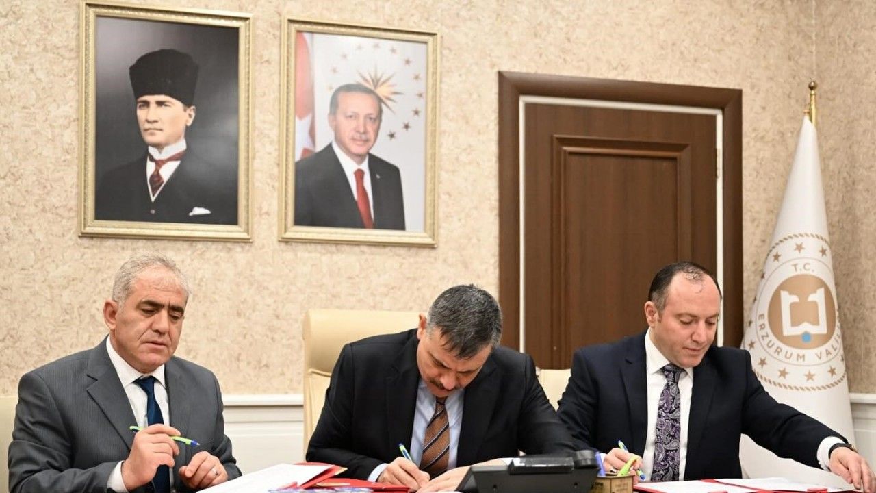 Erzurum Valisi Mustafa Çiftçi, kente kazandırılacak iki yeni okul projesi için düzenlenen protokol imza törenine katıldı.