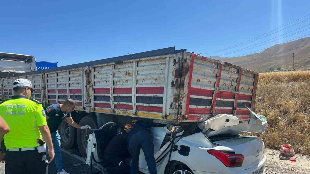 Erzurum’da meydana gelen trafik kazasında, park halindeki tıra arkadan çarpan ve dorsesinin altına giren otomobilde bulunan sürücü hayatını kaybetti.