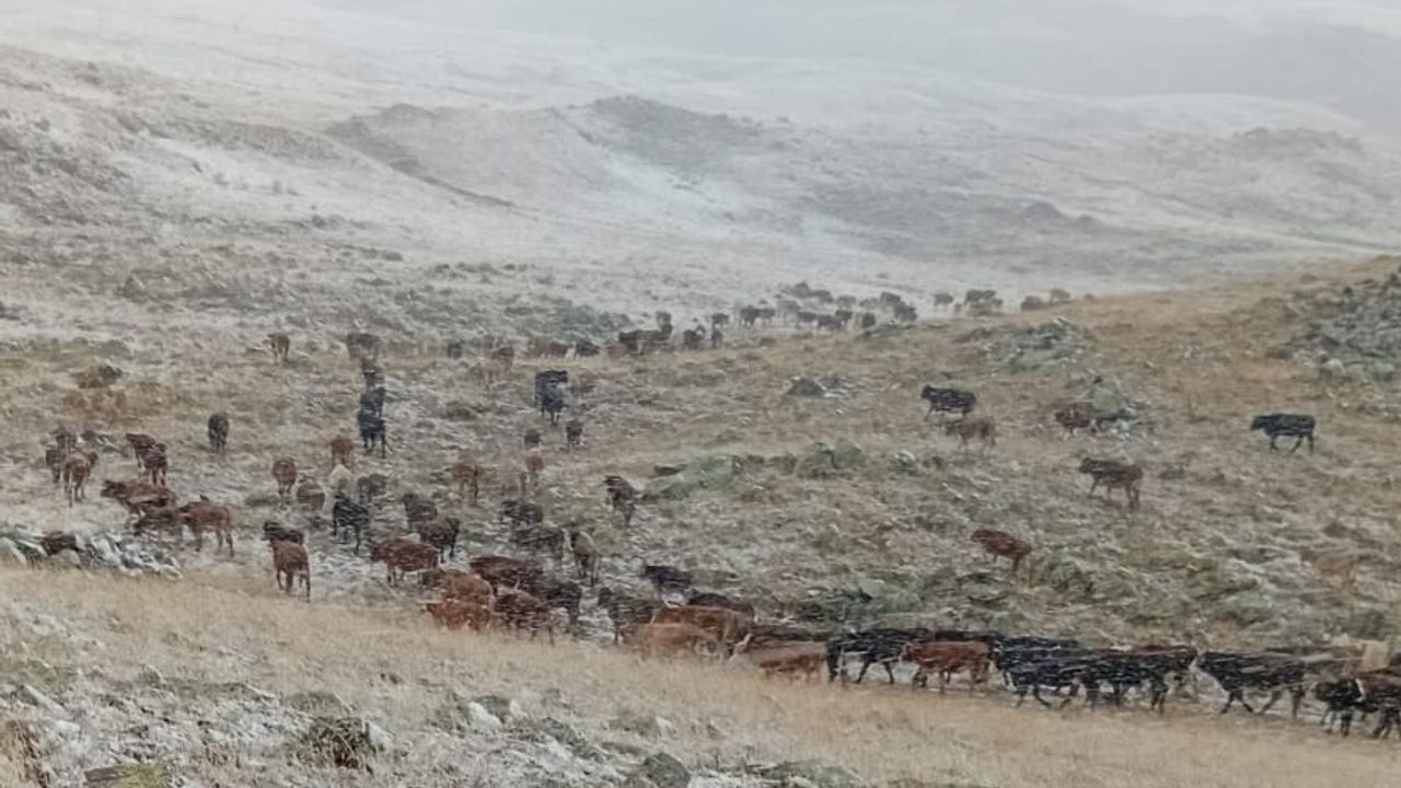 Erzurum’un Oltu ilçesinde yüksek kesimlere kar yağdı, sürülerini yaylada otlatan çobanlar zor anlar yaşadı.
