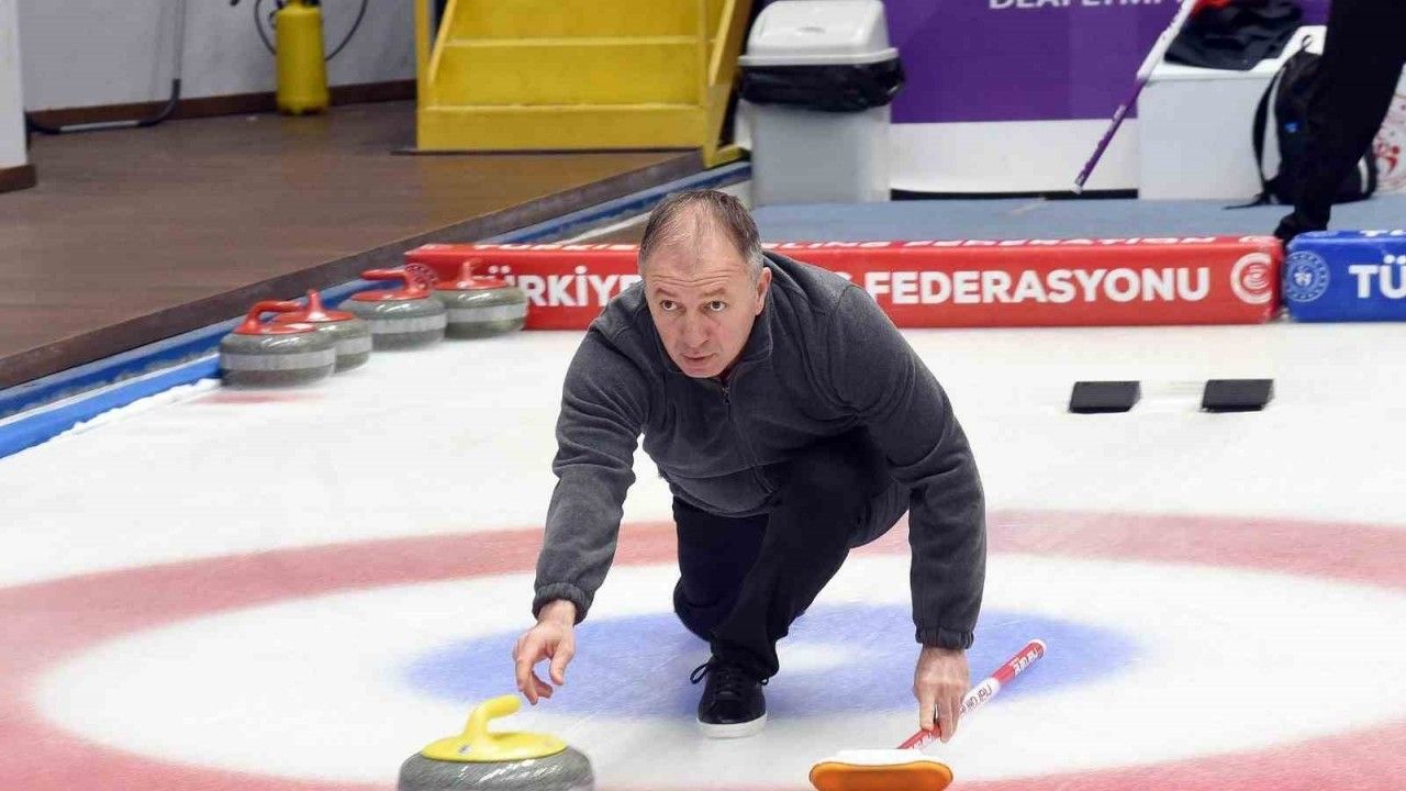 Erzurum Gençlik ve Spor İl Müdürü Levent Çakmur, lisanslı curlingçi olarak Eğitimgücü Spor Kulübü’nün başarısı için mücadele ediyor.