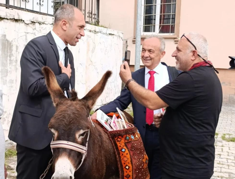 Türkiye’nin ’Eşekli Dostoyevski’si Ersin Bilge, çocukların okuma alışkanlığı kazanmasına katkı sağlamak amacıyla Ardahan’ın Posof ilçesinde çocuklara kitap dağıttı.