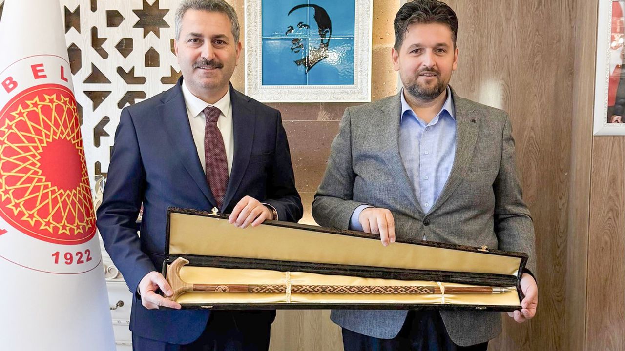 Bir dizi gezi ve incelemer bulunmak üzere Bitlis’e gelen AK Parti Yerel Yönetimler Başkan Yardımcısı Eyüp Eroğlu, Ahlat Belediyesi’ni ziyaret etti. Bitlis ilçelerindeki programlar kapsamında Adilcevaz ziyareti sonrası Ahlat’a geçen Eroğlu, Ahlat Belediye Başkanı Yavuz Gülmez’i ziyaret etti. Belediye makamında AK Parti Yerel Yönetimler Başkan Yardımcısı Eyüp Eroğlu ağırlayan Ahlat Belediye Başkanı Yavuz Gülmez ziyaretten duyduğu memnuniyeti dile getirerek ziyaret anısına Ahlat Bastonu hediye etti. Ziyarette Eroğlu’na, AK Parti İl Başkanı Kadir Köstekçi, Bitlis Belediye Başkanı Nesrullah Tanğlay, Adilcevaz Belediye Başkanı Abdullah Akbaba ve AK Parti teşkilat mensupları eşlik etti.