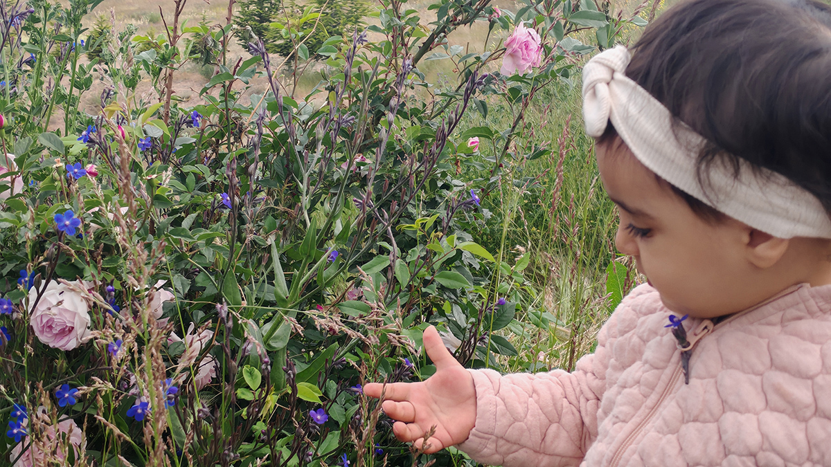 Ahlat'a açan güllerin arasında yürüyen küçük bir çocuk, doğanın içinde masalsı bir görüntü oluşturdu.