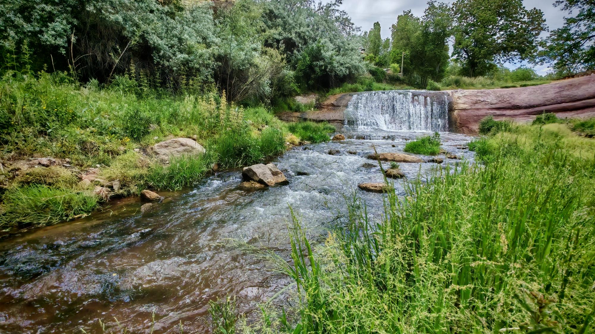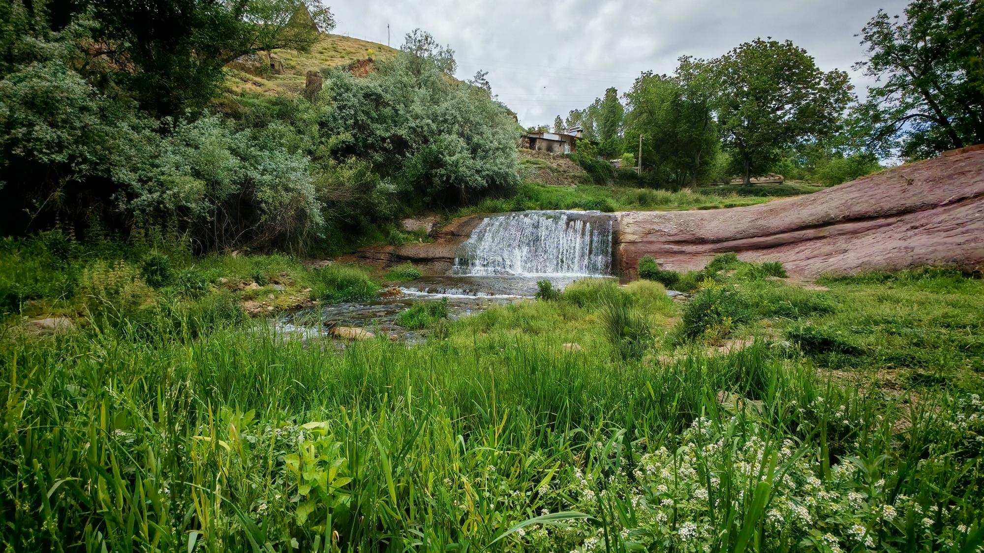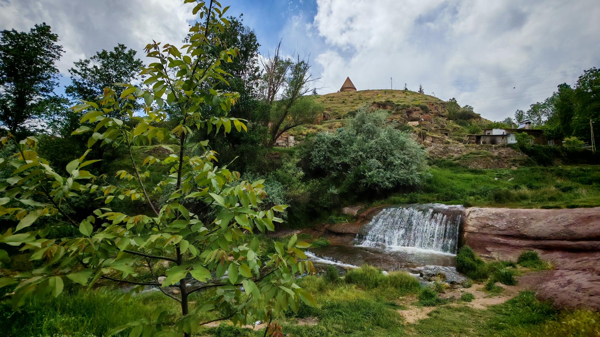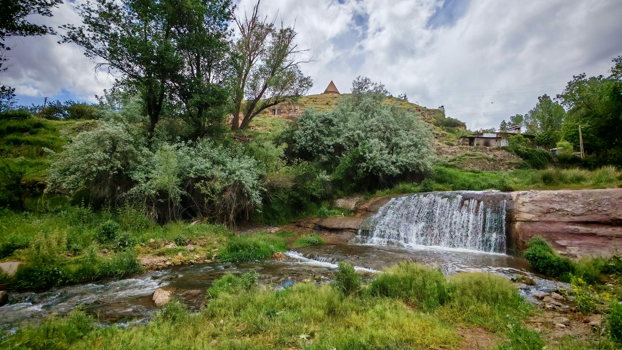 Bitlis’in Ahlat ilçesinde, XV. yüzyıldan kalma tarihi Bayındır Köprüsü ve altından akan minik şelale, baharın tonlarıyla büyüleyici bir manzara sunuyor.