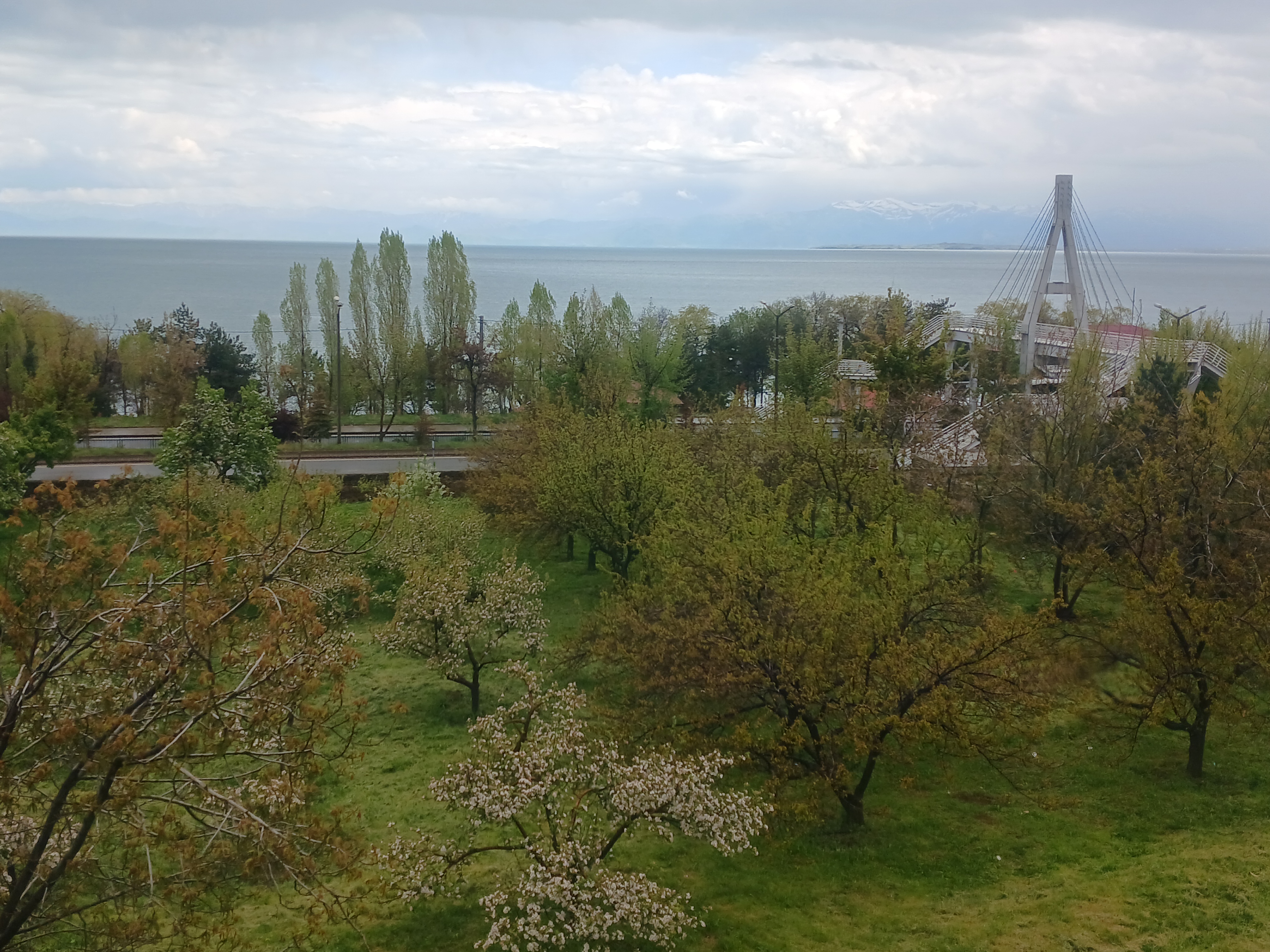 Gökyüzünün mavisiyle gölün laciverdi birbirine karışırken, kıyı boyunca sıralanan ağaçların dalları bin bir çeşit çiçekle süsleniyor. Pembenin, beyazın ve diğer canlı tonların ahenkli dansı, görenleri adeta büyülüyor.