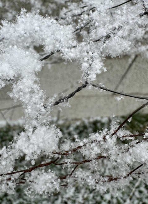 Yeşil ile Beyazın bütünleştiği çiçekler, karla birlikte tezat ve etkileyici bir görüntü oluşturdu.