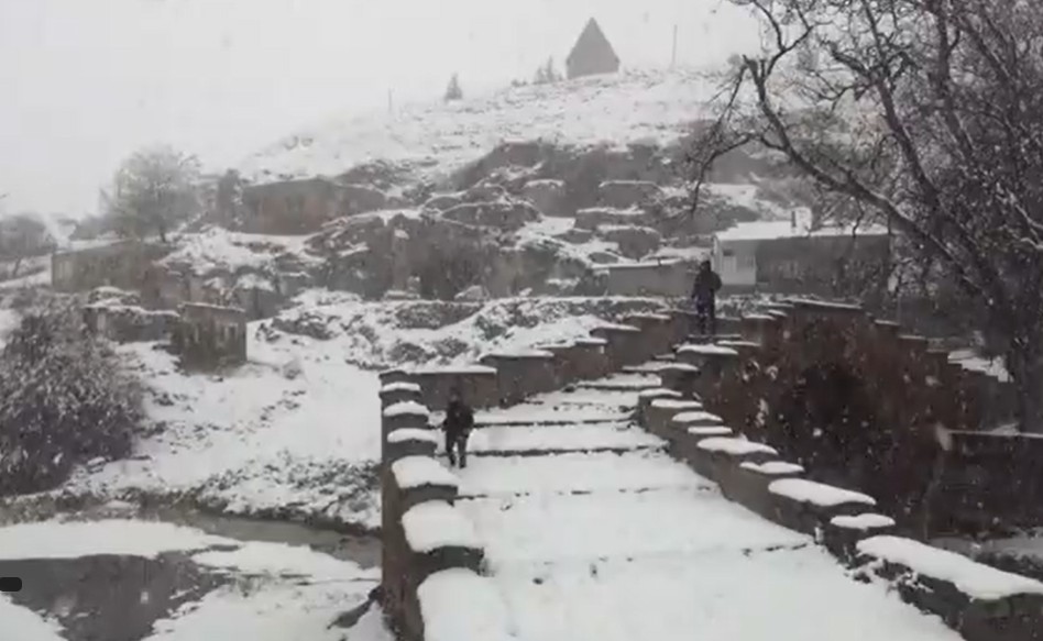 Bitlis’in Ahlat ilçesinde çiçeklerin, karın ve tarihi güzelliklerin bir araya geldiği bu anlar, kaybolmaması gereken birer hatıra. Çünkü Nisan ayında bir daha kar yağmaya bilir.