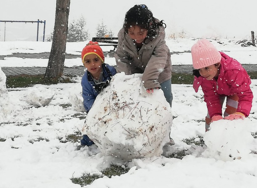 Nisan ayında yağan kar en çok çocukları sevindirdi.