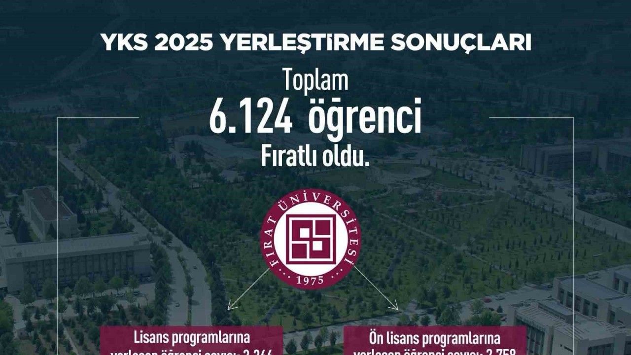 ÖSYM’nin açıkladığı YKS 2025 Yerleştirme Sonuçlarına göre Fırat Üniversitesi, bu yıl kontenjanlarını yüzde 100 oranında doldurdu. Üniversiteye toplam 6 bin 124 öğrenci yerleşti. Bunların 3 bin 366’sı lisans, 2 bin 758’i ön lisans programlarına kayıt hakkı kazandı.