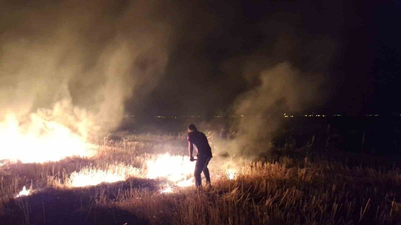Muş’un Körpeağaç köyünde çıkan anız yangını korkulu anlar yaşatırken geceyi alevler aydınlattı