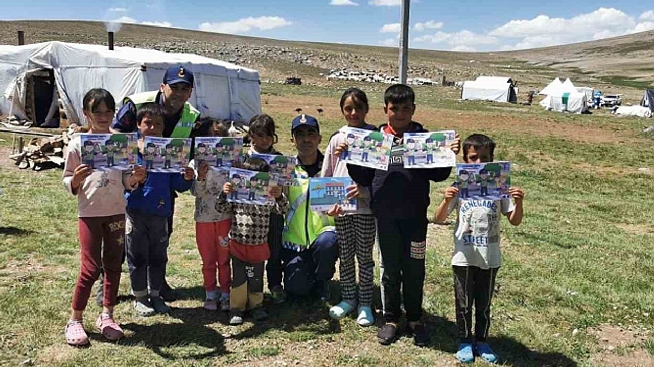 Erzurum İl Jandarma Komutanlığı Trafik Jandarması Timlerince göçerlere eğitim verildi, çocuklara boyama kitabı dağıtıldı.