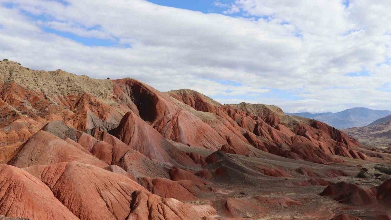 Erzurum’un Oltu ilçesinde bulunan rengarenk tepeler, hafta sonu doğa fotoğrafçılarını ağırladı. Oltu’nun, gökkuşağını andıran görüntüleriyle dikkat çeken tepeleri, 45 milyon yıl öncesine dayanan oluşumlarıyla adeta bir doğal harika olarak ifade ediliyor. Dünyada benzeri yalnızca Çin’de bulunan Oltu’nun rengarenk tepeleri, özellikle yağmur sonrası daha da belirginleşerek, doğa fotoğrafçılarının gözdesi haline geliyor. Tuzla, Yolboyu, Bahçecik ve Kaleboğazı mahallelerinde yer alan gökkuşağı ve kırmızı tepeler, her geçen gün daha fazla turistin ilgisini çekiyor.
