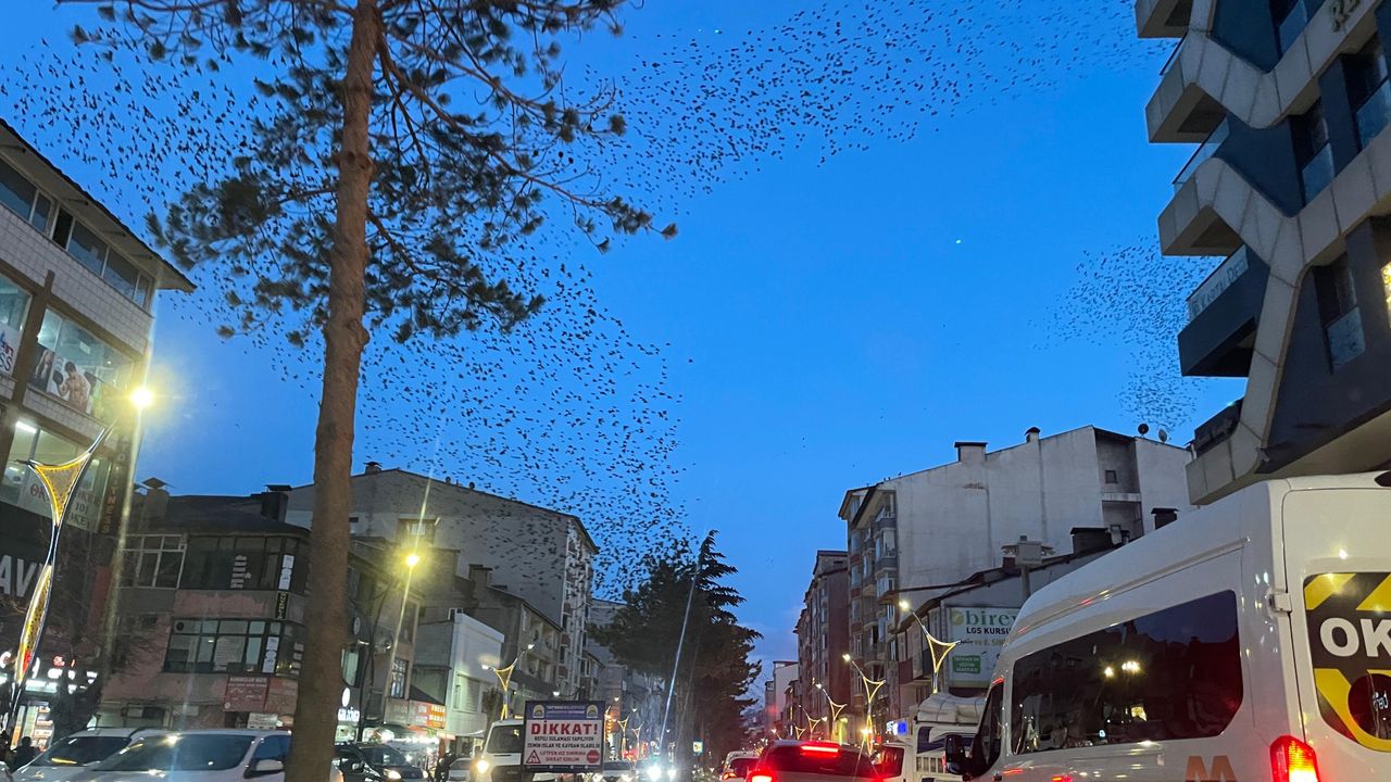 Akşamın alacakaranlığıyla birlikte bir araya gelen kuş sürüleri, toplu uçuşlarıyla gökyüzünde etkileyici görüntüler oluşturdu. Vatandaşlar, bu doğal manzarayı cep telefonlarıyla kaydederek sosyal medyada paylaştı.