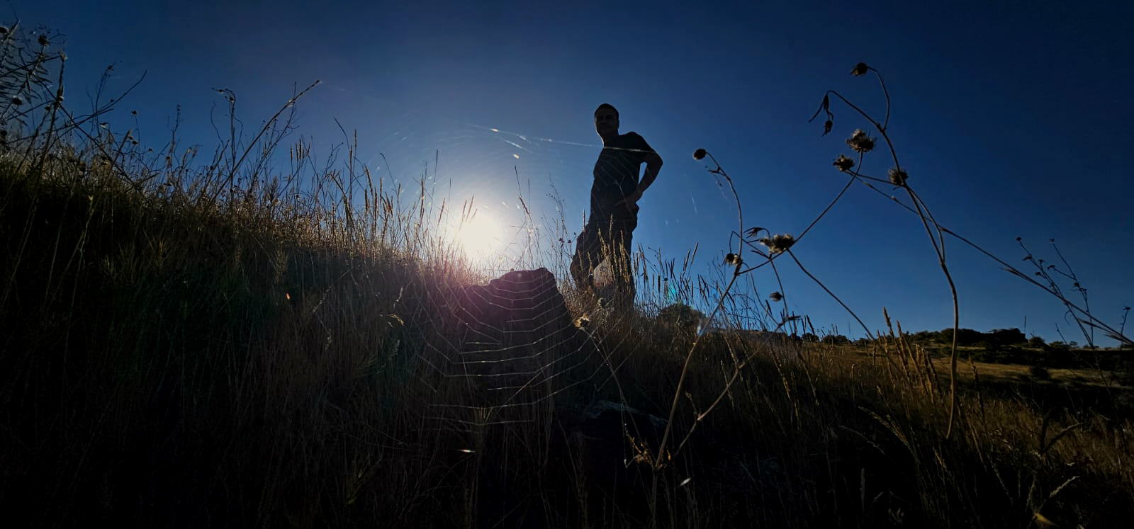 Tepede tek başına duran bir adam… Güneşin ilk ışıkları ağın tellerinden süzülürken, insanla doğa arasındaki o ince denge bir anlığına görünür oluyor. Ne bir söz, ne bir hareket; sadece ışığın, gölgenin ve sessizliğin ortak dili.