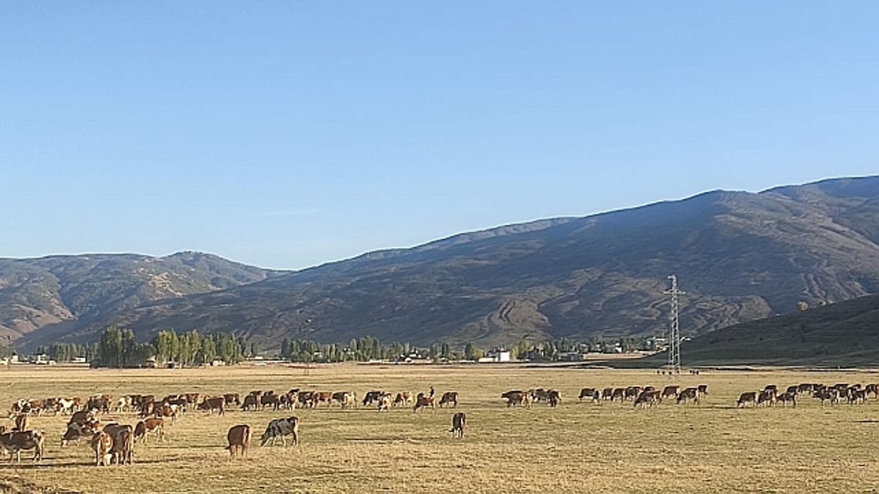 Bitlis'in Güroymak ilçesinde sonbaharın güneşli günlerinde çiftçiler büyükbaş hayvanlarını meralarda otlatmaya devam ediyor.