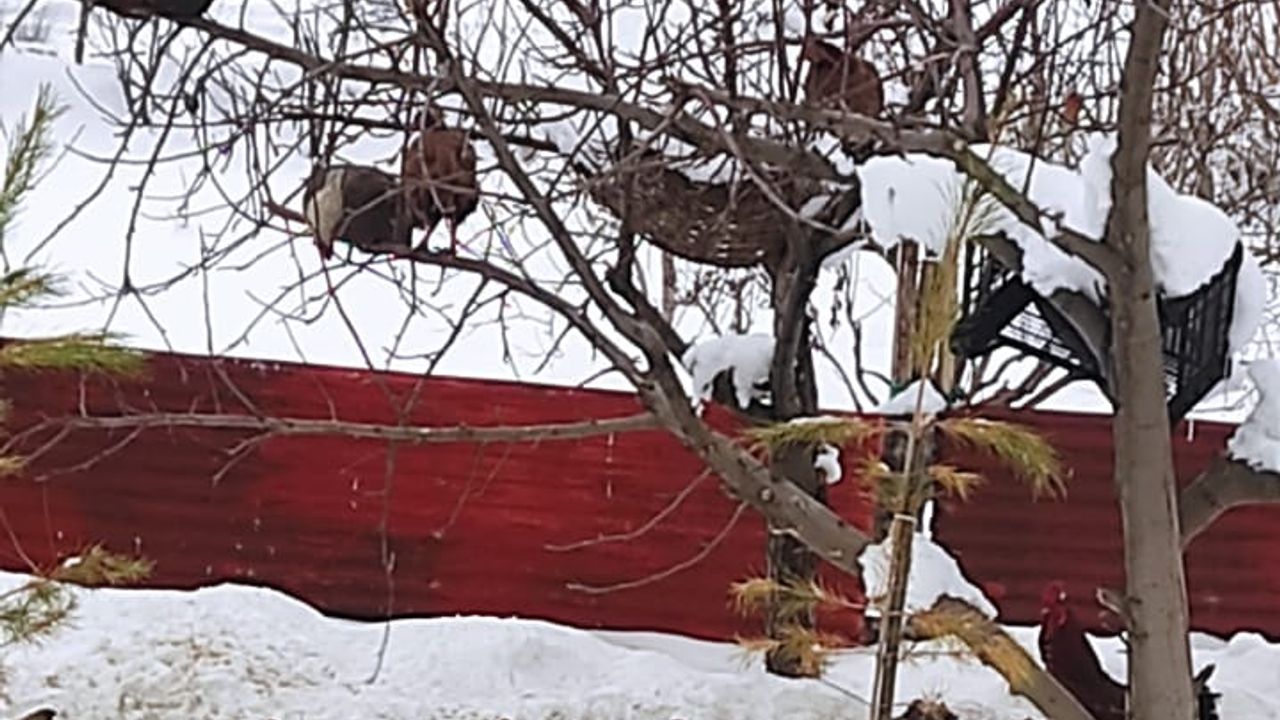 Bitlis’in Güroymak ilçesinde ağaç dallarına çıkan tavuklar, görenleri şaşırttı.