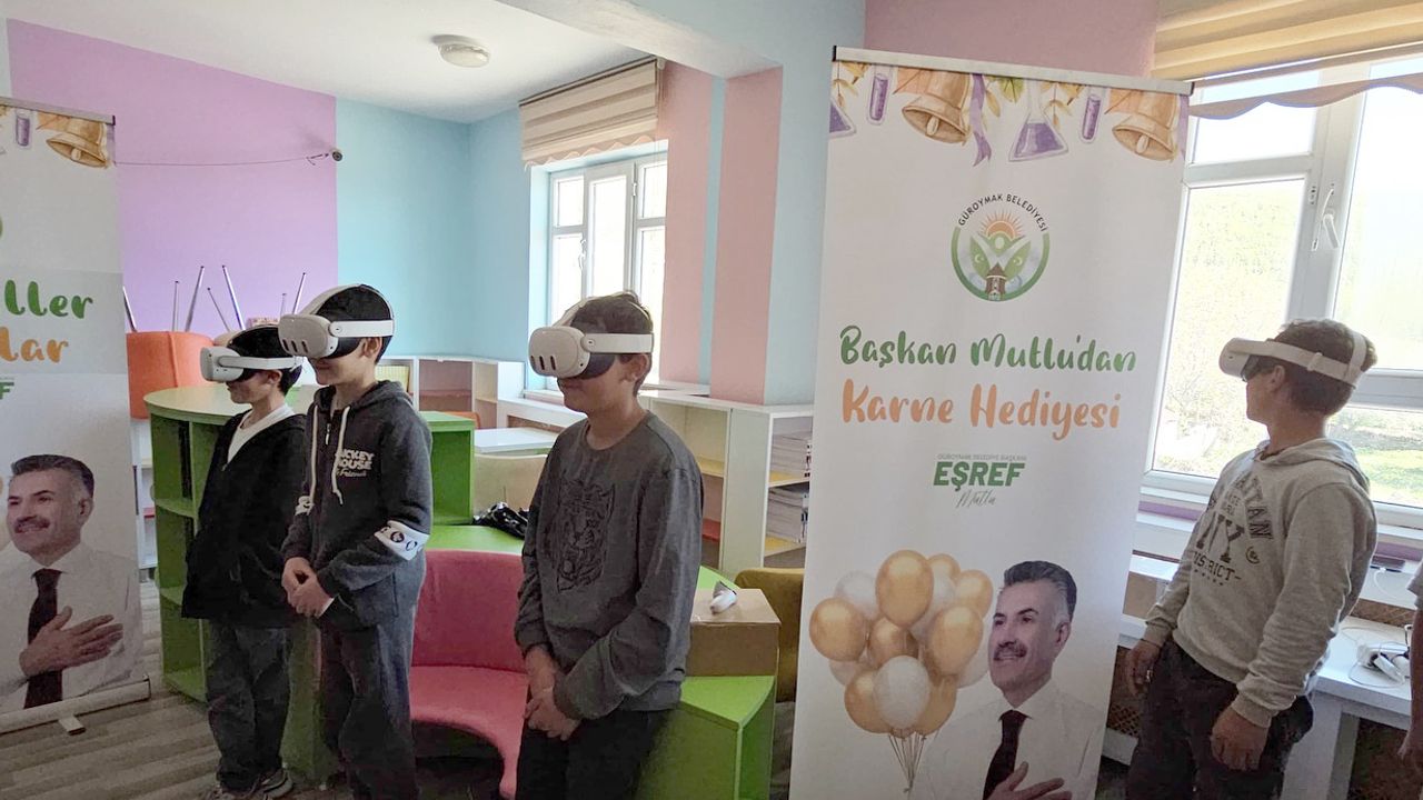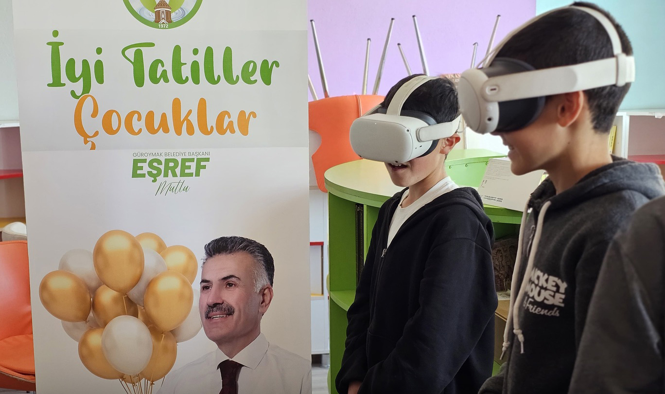 Güroymak Belediye Başkanı Eşref Mutlu’nun talimatıyla başlatılan teknoloji odaklı eğitim projesi kapsamında, ilçeye bağlı 42 köy okulunda sanal gerçeklik gözlüğü etkinliği düzenleniyor. Proje kapsamında öğrenciler, sanal gerçeklik gözlükleri aracılığıyla bilim, tarih, coğrafya ve uzay gibi farklı alanlarda etkileşimli öğrenme deneyimi yaşama fırsatı buluyor. Öğrenciler; Ay’a yolculuk, tarihî mekân gezileri ve doğa keşifleri gibi içeriklerle hem eğleniyor hem de öğreniyor.