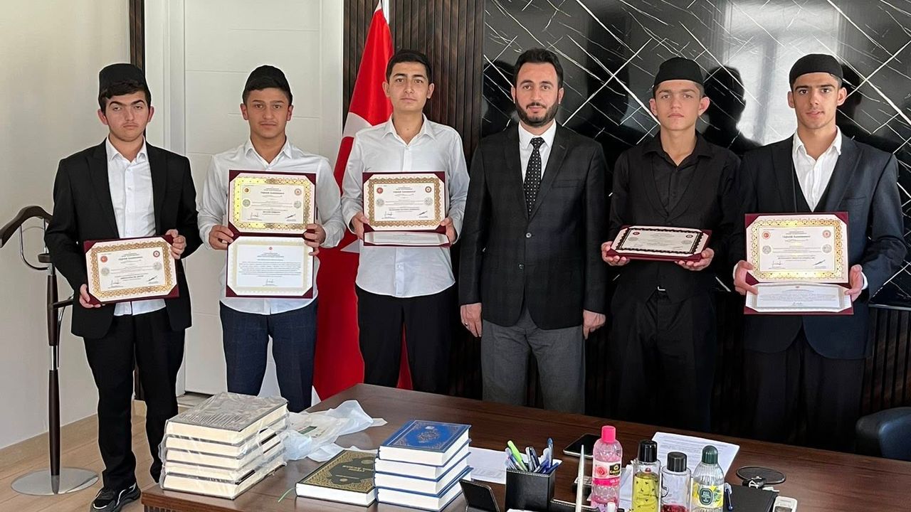 Güroymak ilçesindeki Şeyh Masum Medresesi talebeleri Muhammed Mustafa Çetinkaya, Muhammed İbrahim Sarıbulak, Abdülhalim Sayın, Hüseyin Coşkun ve Muhammed Hafid ile Kur’an Kursu talebesi Musab Tarhan, hafızlıklarını tamamlayarak büyük bir emek ve sabrın sonunda hafızlık belgelerini aldı. Hafızlar Diyanet İşleri Başkanlığı tarafından gönderilen hafızlık belgeleri Güroymak İlçe Müftüsü Rıdvan Çelik tarafından hafızlara takdim edildi. Müftü Çelik, “Bu kutlu yolda genç hafızlarımıza rehberlik eden hocalarına, dualarıyla destek veren ailelerine gönülden teşekkür ediyor; Kur’an’ı sadece ezberleyen değil, hayatına da rehber edinen nesiller olmalarını Yüce Rabbimizden niyaz ediyoruz” dedi.