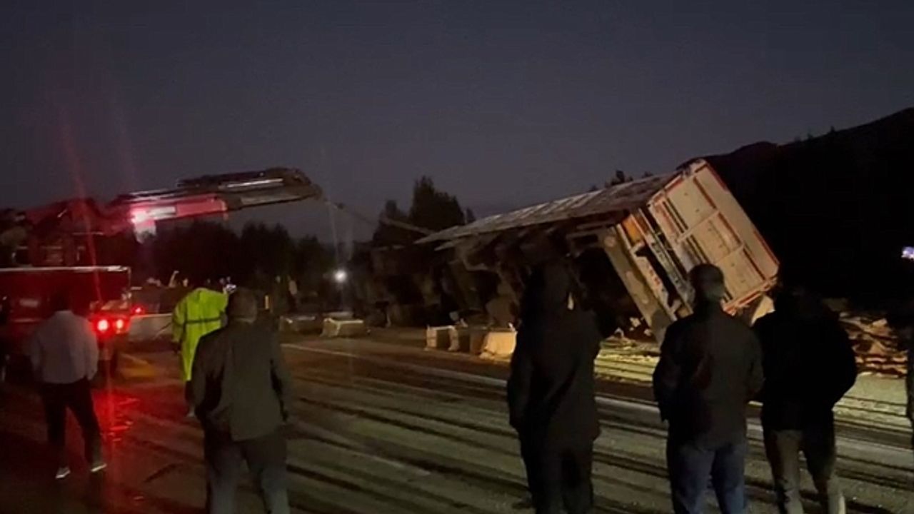 Hakkari-Van karayolunda saman yüklü tırın devrilmesi soncu meydana gelen trafik kazasında sürücü yaralandı.