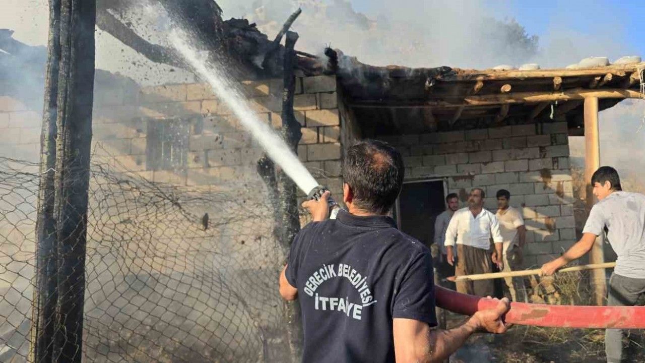 Hakkari’nin Derecik ilçesinde çıkan yangında bin 100 balya ot ile 150 torba saman yandı.