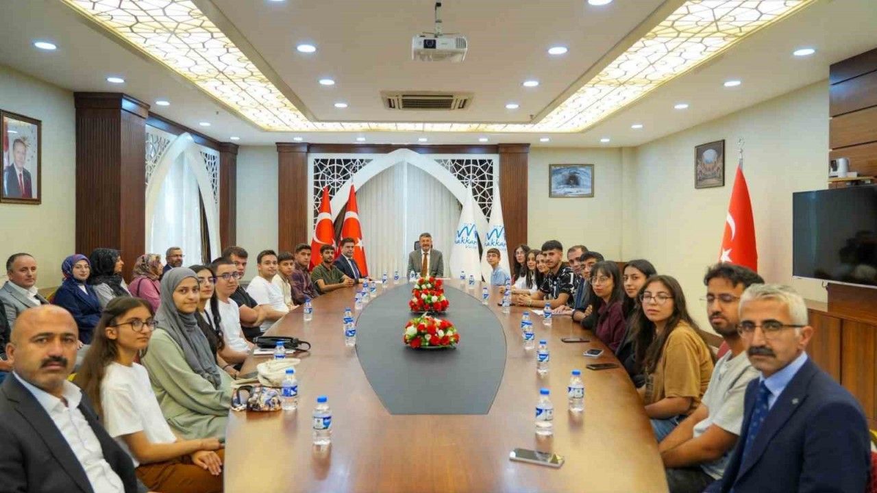 Hakkâri Valisi Ali Çelik, Liselere Geçiş Sınavı (LGS) ve Yükseköğretim Kurumları Sınavı’nda (YKS) dereceye giren öğrencileri makamında ağırladı.
