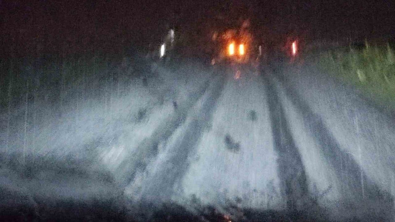 Ardahan’ın Hanak ilçesinde sağanak yağışın ardından etkili olan dolu yağışı, sürücülere zor anlar yaşatırken, karayolu beyaza bürüdü.