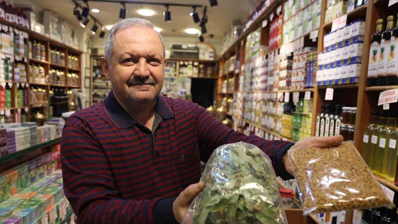 43 yıldır aktar işi yaptığını belirten Selçuk Aktaş, "Yazdan kışa dönüş esnasında vücut ister istemez şaşırma dönemi dediğimiz evreye giriyor. Üşütme olayları, grip, nezle ve öksürük olayları çoğalmaya başlıyor. Vatandaşlar biraz daha kendilerine dikkat ederlerse bunlar daha aza inebilir. Vatandaşlara genelde ıhlamur, kış çayları, zencefil ve atom çaylarını tavsiye ediyorum. Vatandaşlar da aldıkları ürünleri kullanıyorlar. Genelde vatandaşlar en çok zencefil ve kış çayını tercih ediyor. Geçen seneye oranlar fiyatlarda yüzde 50-60 civarında ıhlamurda zam oranı var. Kış çaylarının genelinde bu rakamlar civarında bir oynama var. En önemli şey tedbir almaktır. Tedbir aldığın zaman soğuk bir karpuzu yediğin zaman ister istemez içindeki buz parçacıkları boğazdaki bademciklere, öksürüğe, gribe ve nezleye yol açıyor. Vatandaşlarımız bunlara dikkat ederse hastalık görmeden kışı atlatabilir" dedi.