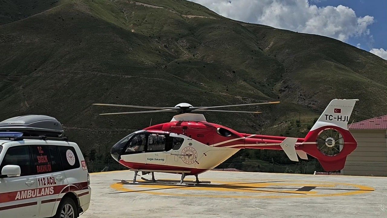 Van’ın Bahçesaray ilçesinde solunum sıkıntısı çeken hasta için helikopter ambulans havalandı.