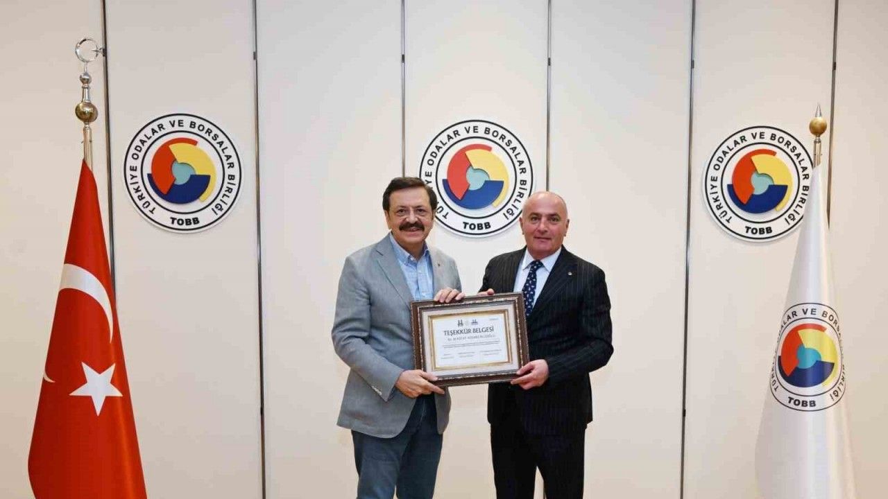 Erzurum Ticaret ve Sanayi Odası (ETSO) Yönetim Kurulu Başkanı ve TOBB Yönetim Kurulu Üyesi Saim Özakalın, Ekonomik İşbirliği Teşkilatı (EİT) ve Erzurum İl Koordinasyon Kurulu tarafından EİT 2025 Yılı Turizm Başkenti Erzurum’da gerçekleşen Palandöken Ekonomi Forumu’na (PEF) katkılar sunan Dünya Odalar Federasyonu ve TOBB Başkanı Rifat Hisarcıklıoğlu’na "Teşekkür Belgesi"ni takdim etti.
