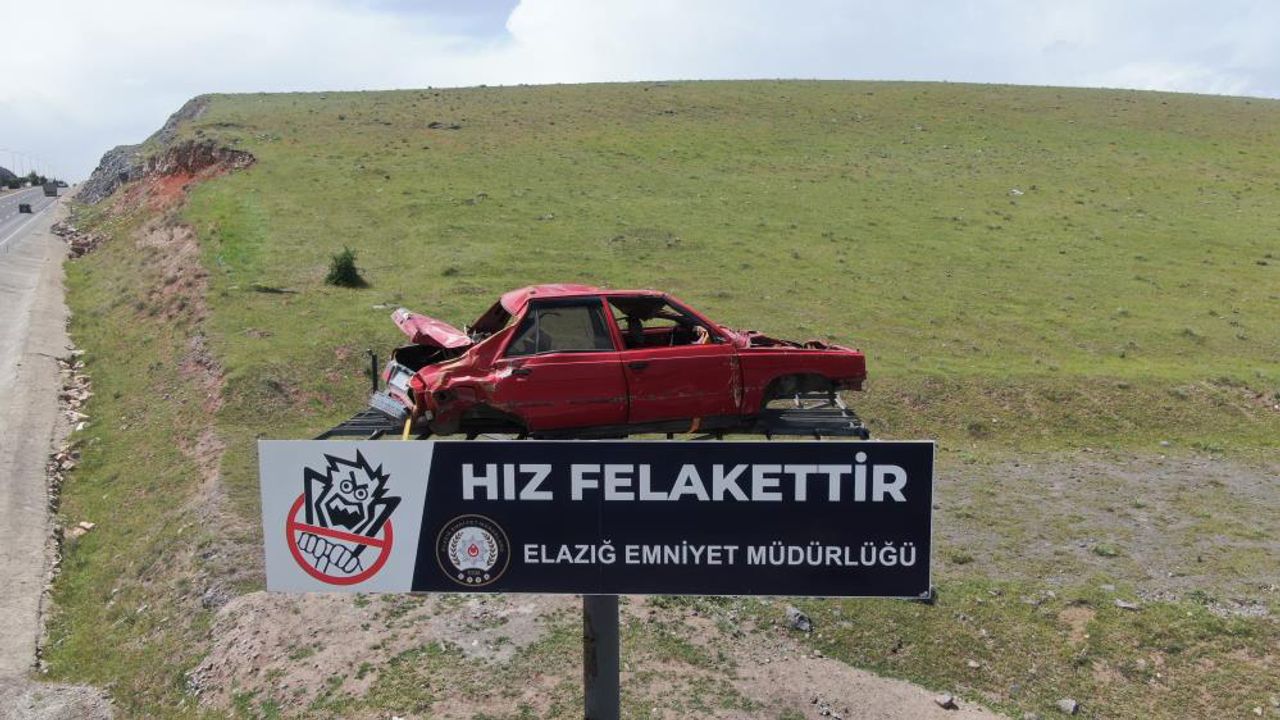 Elazığ İl Emniyet Müdürlüğü, anayol kenarına kaza yapan bir aracı yerleştirerek ‘Hız Felakettir’ yazdı. Yapılan anlamlı çalışmada ile hız sonucunda oluşabilecek bir kaza, adeta canlı bir şekilde sürücülere gösterildi. Kentte huzur ve güvenliği sağlamak için çalışmalarını aralıksız sürdüren Elazığ İl Emniyet Müdürlüğü, trafik kazalarına karşı vatandaşları bilgilendirmek ve farkındalık oluşturmak için farklı projelere imza atıyor. Bu çerçevede İl Emniyet Müdürlüğü tarafından Güney Çevre Yoluna kaza yapan bir araç yerleştirilerek üzerine ‘Hız Felakettir’ yazıldı. Yapılan çalışmada ile hız sonucunda oluşabilecek bir kaza, adeta canlı bir şekilde sürücülere gösterildi. Anlamlı bir çalışma olduğunu dile getiren vatandaşlar, aracı gören sürücülerin kaza riskini düşündüğü ve ister istemez yavaşladığını söyledi.