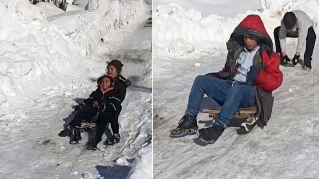Okulların tatil olmasını fırsat bilen çocuklar, kışın keyfini karla kaplı yamaçlarda çıkarıyor. Bir araya gelen çocuklar, kendi imkânlarıyla yaptıkları tahta kızaklarla kayarak doyasıya eğleniyor. Soğuk havaya aldırış etmeyen çocuklar, kahkahalar eşliğinde kızak kayarken renkli görüntüler oluşturuyor.