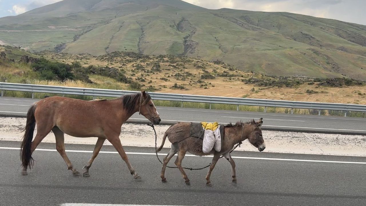 Iğdır-Doğubayazıt kara yolunun Gevro mevkiinde sürüden ayrıldığı tahmin edilen bir at ve eşek, ana yola çıkarak uzun süre boyunca araçların arasında koşmaya başladı.