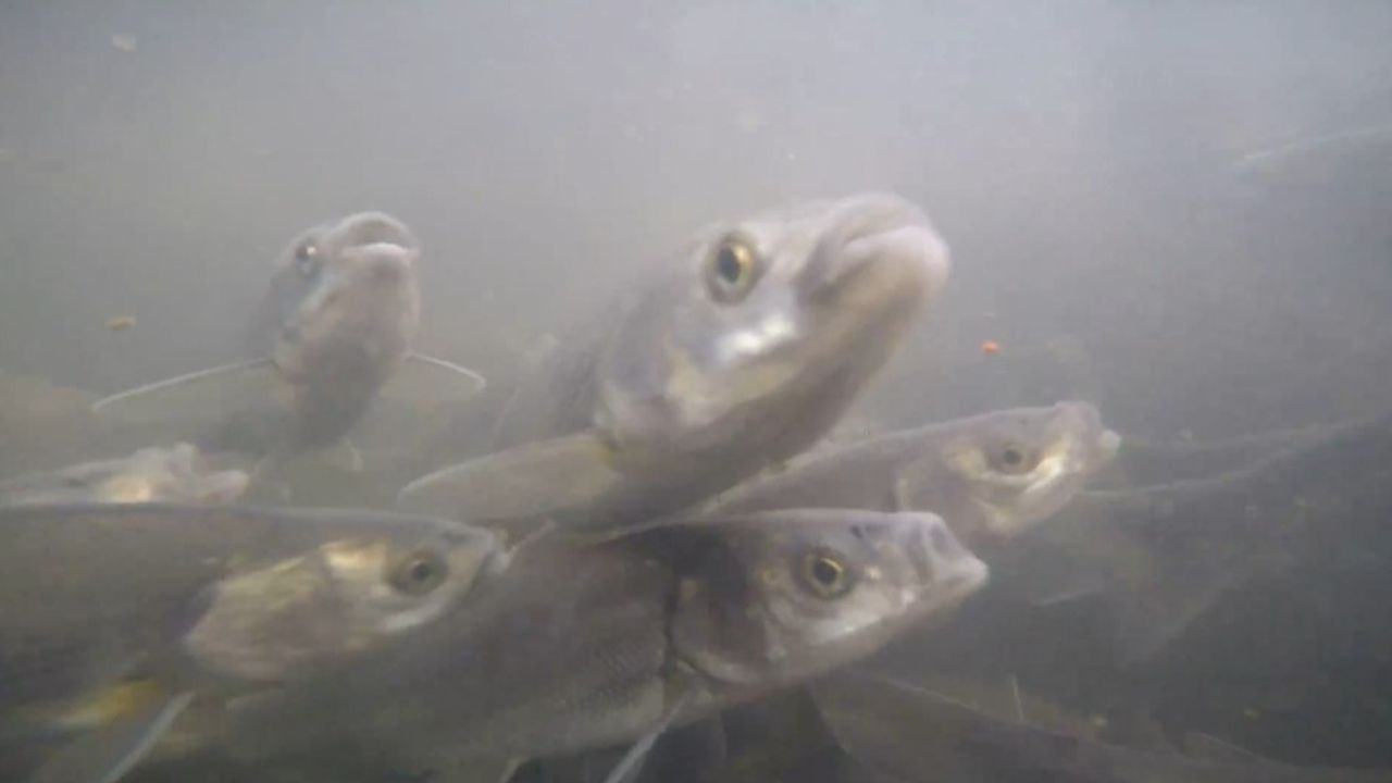 Van Gölü’nün tuzlu ve sodalı suyunda yaşayan inci kefallerinin, üremek için göle dökülen tatlı su derelerine doğru zorlu yolculuğu su altından görüntülendi.