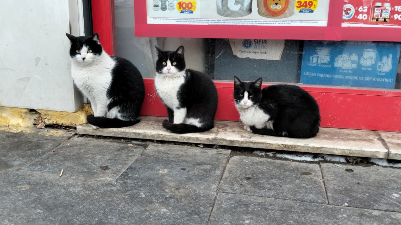 Mahalleli tarafından beslenen ve siyah-beyaz tüyleri nedeniyle “smokinli çete” olarak anılan kediler, sempatik tavırlarıyla kısa sürede bölgenin maskotu haline geldi. Özellikle sabah ve akşam saatlerinde market önünde toplanan kediler, alışverişe gelen vatandaşları selamlar gibi karşılıyor.